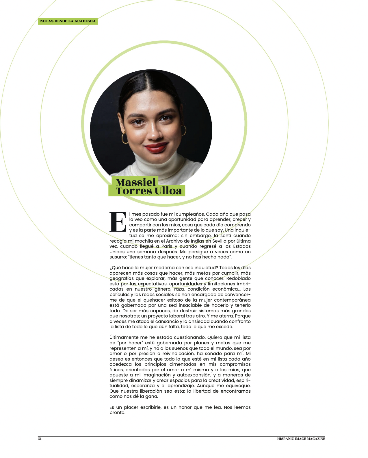 “El mes pasado fue mi cumpleaños. Cada año que pasa lo veo como una oportunidad para aprender, crecer y compartir con los míos, cosa que cada día comprendo y es la parte más importante de lo que soy. Una inquietud se me apróxima…”